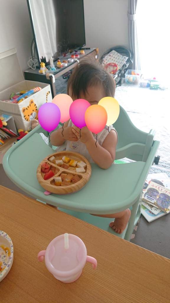 今日もくみちゃんは朝からご機嫌でニコニコ、キャッキャ遊んでました。朝ごはんもモグモグ、パクパクといっぱい食べて!(食パン一枚!トマト二切れ!キュウイ半分!バナナ半分!ヨーグルト一個)毎朝いつもこのくらい食べます。凄いですよね(*’ω’*) いっぱい欲しがっちゃうのでご飯の時間はいつも妻ちゃんは苦労してます。