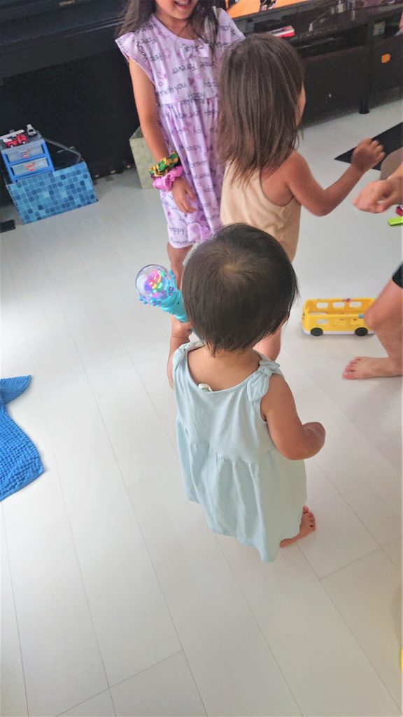 さらにお姉さまの旦那様を見てはギャン泣き‼旦那様はムキムキマッチョの強面なので怖かったのでしょう笑。でもユーモワ抜群で家族思いな優しいパパさんです。